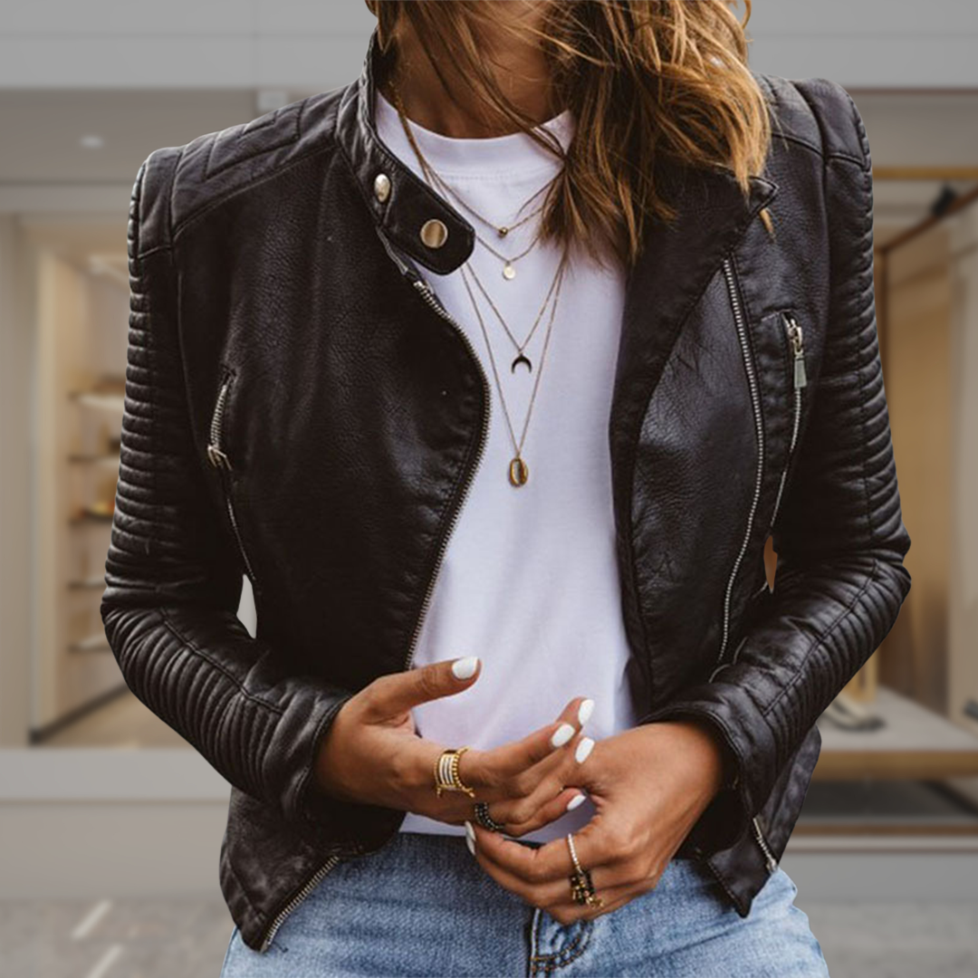 Women’s Fitted Leather Biker Jacket | April